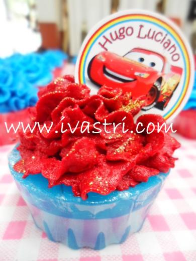 Colorido jabón con forma de cup cake, personalizado con personaje de Cars y nombre del festejado!!! Jabones de glicerina Infantiles Eventos Fiestas Infantiles