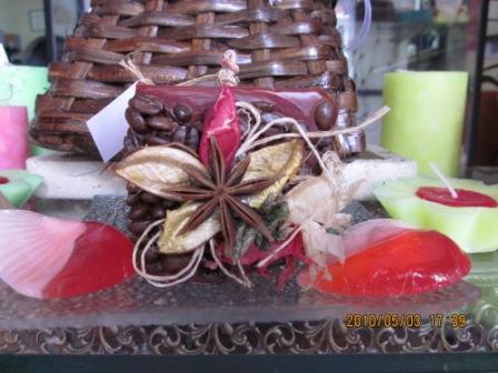 Vela decorada con café tostado!!!..producto típico de la región...decorada con productos naturales Velas Diseños especiales