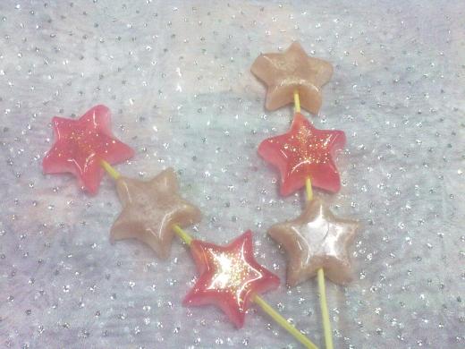 Brochetas con estrellas nacaradas y transparentes con glitter Jabones de glicerina Brochetas y paletas Eventos XV Años