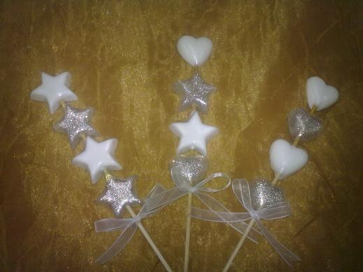Brocheta con estrellas y corazones elige tu combinación y utilizalos como recuerdos o arma tus arreglos Jabones de glicerina Brochetas y paletas Eventos Bodas