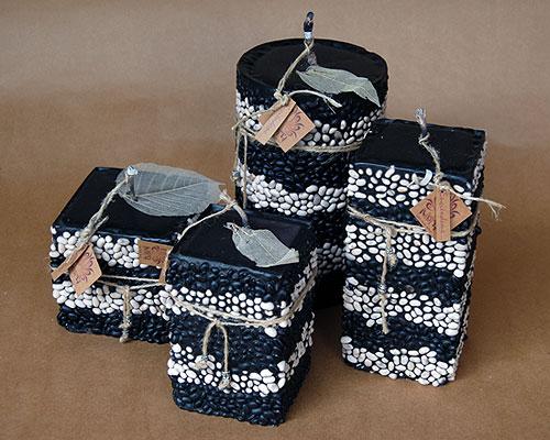 Velas con semillas de frijol negro y blanco, Diferentes tamaños.